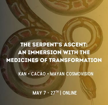 Join us for 20 days of remembrance, re-awakening, and transformation as we return to the natural cycles of time and the serpentine wisdom of Nahual Kan. We walk in accordance with the Mayan Cholq'ij count of time as observed in the highlands of Guatemaya and the medicine of I'xCacao.